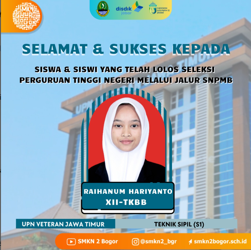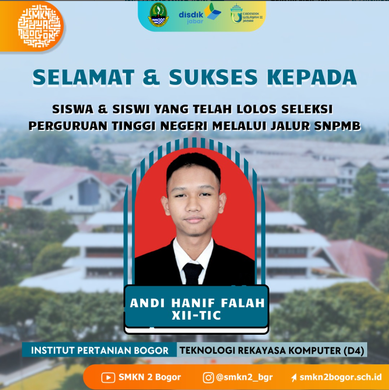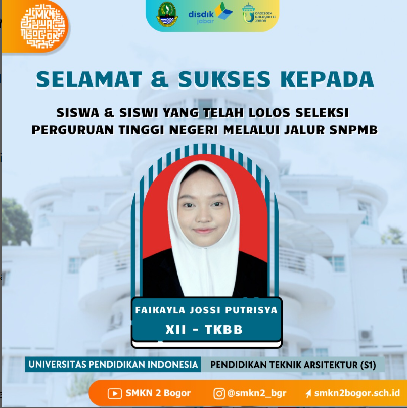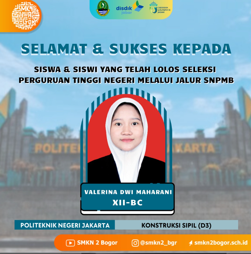 SMKN 2 Kota Bogor mengucapkan selamat kepada Siswa/i TERBAIK, Semoga perjalanan akademik di jenjang yang lebih tinggi penuh dengan ilmu, pengalaman, dan kesuksesan!!! Teruslah berprestasi dan menginspirasi!!!